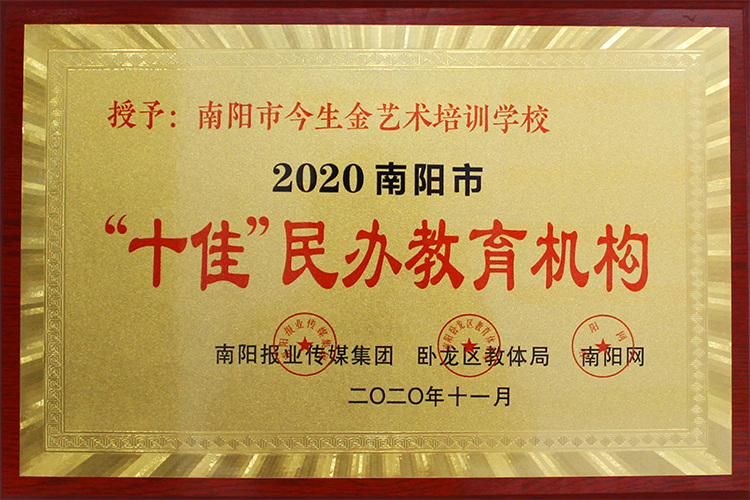 由南陽報業(yè)傳媒集團主辦,南陽報業(yè)傳媒集團、南陽網(wǎng)、南陽教育新聞網(wǎng)承辦的2020年南陽市臥龍區(qū)、宛城區(qū)、示范區(qū)“ ‘十佳’民辦教育機構(gòu)”、“誠信辦學單位”頒獎典禮在南陽日報社五樓會議室舉辦,南陽市今生金藝術(shù)培訓學校榮獲“ ‘十佳’民辦教育機構(gòu)”榮譽稱號。